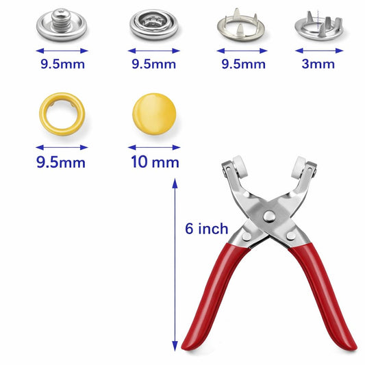 Coslifestore Premium Snap Button Fastener Tool Kit – 100 Sets 9.5mm Metal Fasteners with Hand Pliers Tool, Five-Claw Copper Buckles for Sewing, Garment Stapler, DIY Crafts, Baby Clothes, Leather, Hats, Bibs & Rompers