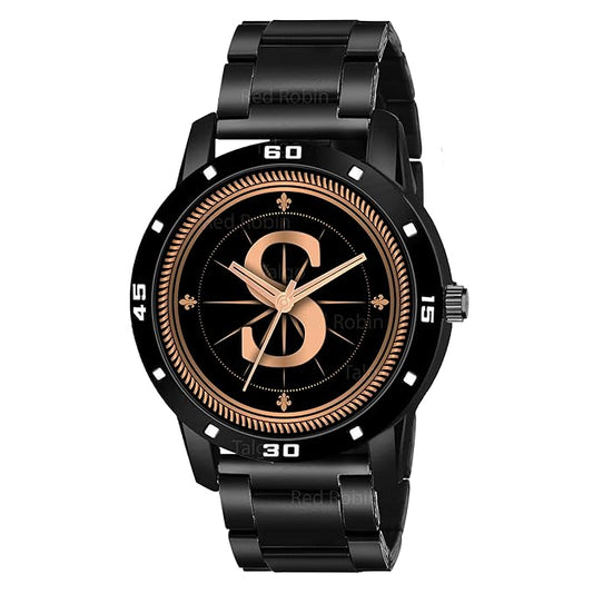 Talgo Analog Round Black Dial ALPHABET S Design Stylish Black Silicone Strap Classic Design Fancy Wrist Watch for Men and Boys, Pack of 1 - ALPHA-S-AVO-BLK-CDBLK