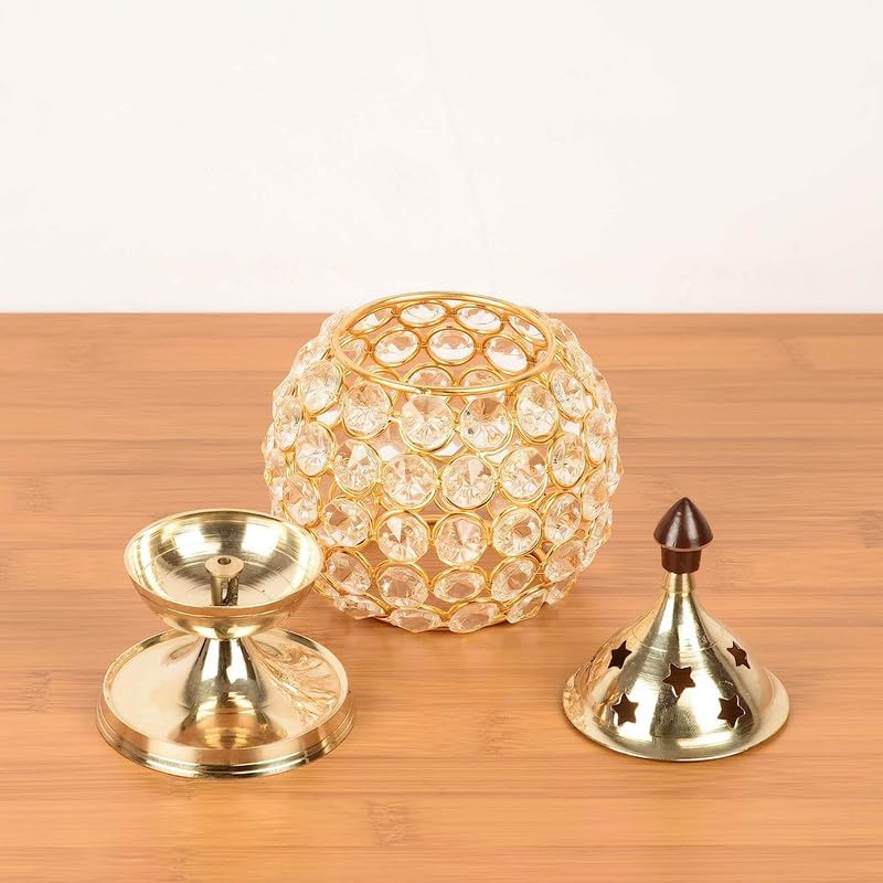 - Decorative Akhand Diya / Oil Lamp Made of Brass & Crystals | Home Decor Ideal Gift