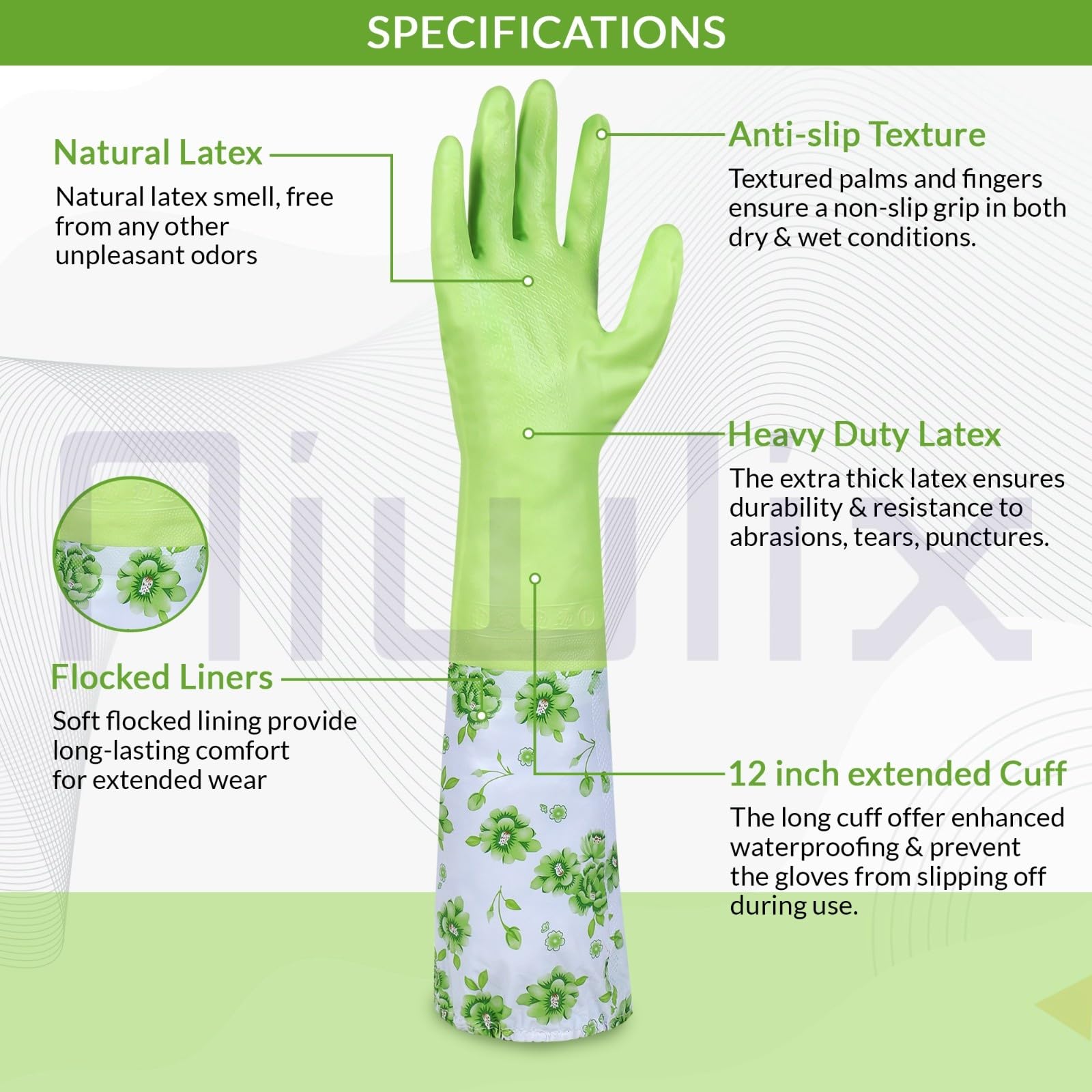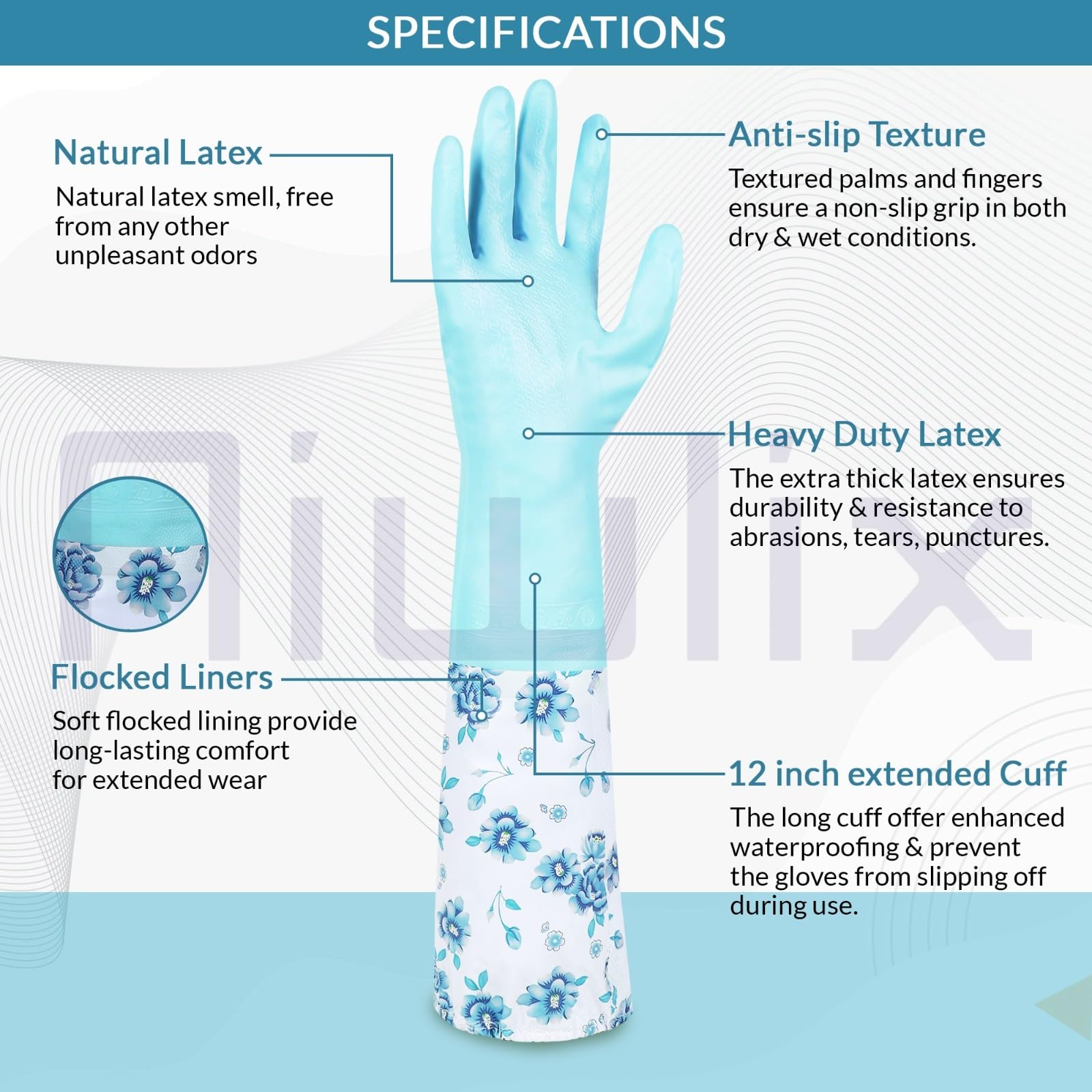 - These PVC latex gloves with long sleeves and elastic bands protect not just your hands but also your wrists and forearms from water. These are ideal cleaning gloves, whether you are washing the dishes or cleaning up bathroom.