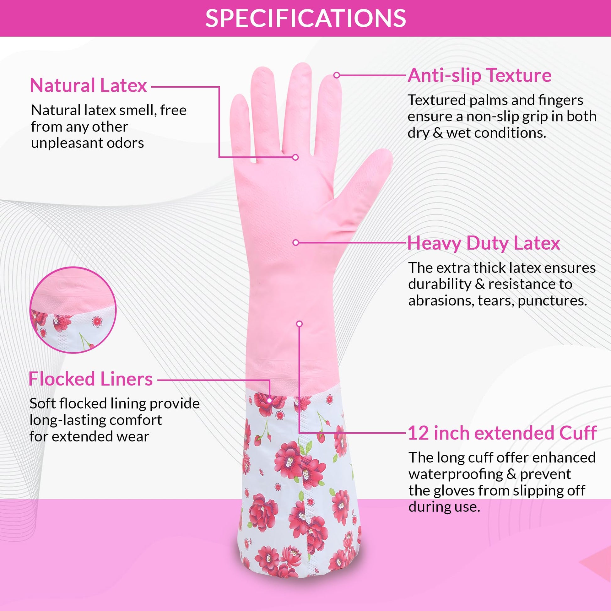Niwlix Hand Gloves For Kitchen Dishwashing, Gardening, Cleaning Non-Slippery & Durable Long Elbow Length (Pink)