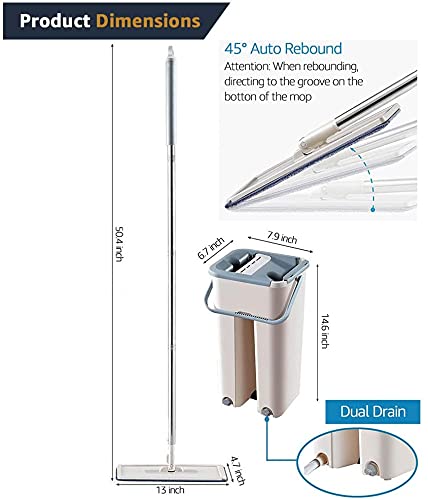 Homeor Stainless Steel Comfort Spin Mop with Big Wheel, Auto-fold Handle, Bucket Floor Cleaning and Mopping System 360° Flexible with 1 Refils, Blue