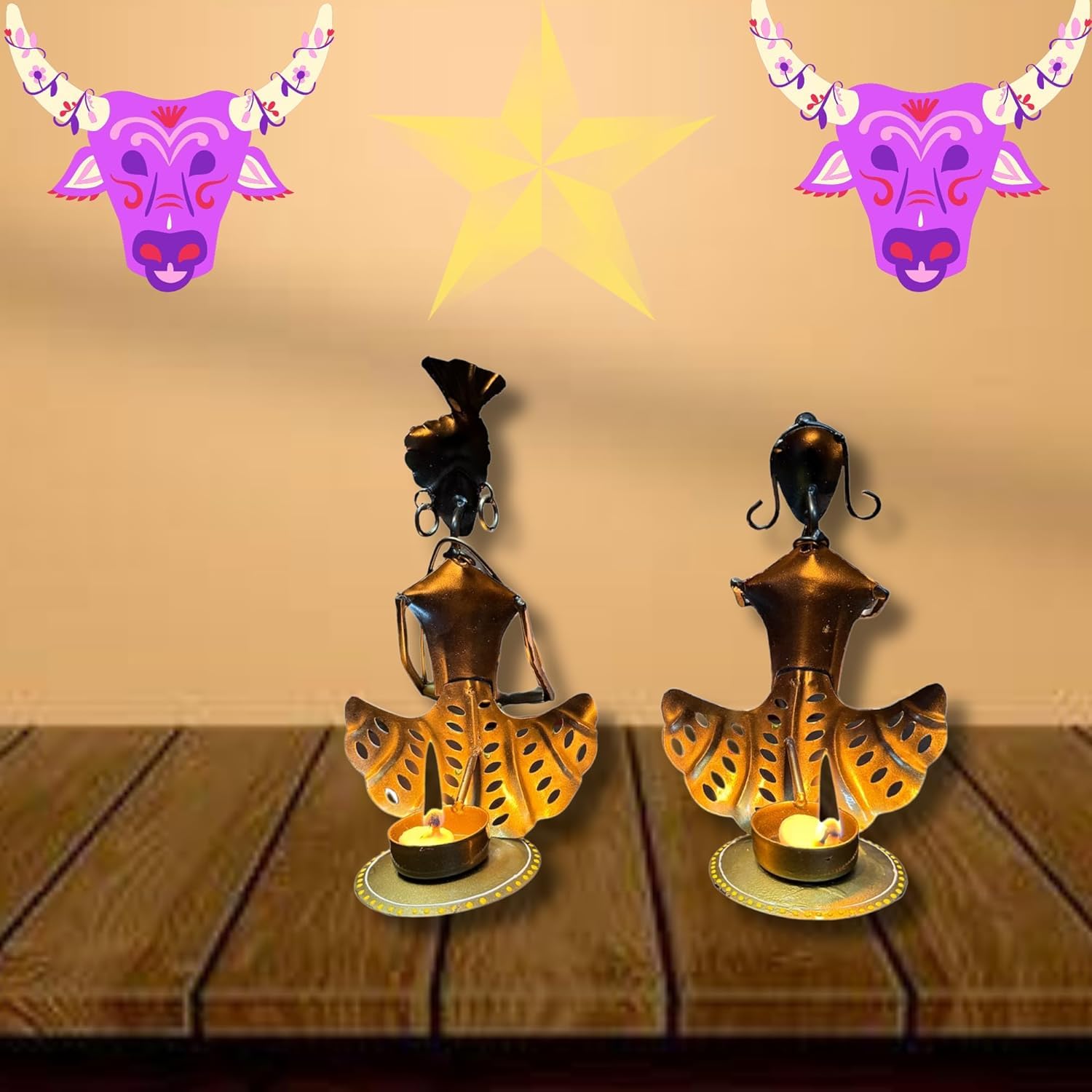 pranjals house Tribal Rajasthani Musician Metal Showpiece, Idol & Statue for Home Living Room Office Bedroom Table Top with Tealight Holder, Perfect for Gifting Size-8.5 x 5 Inches