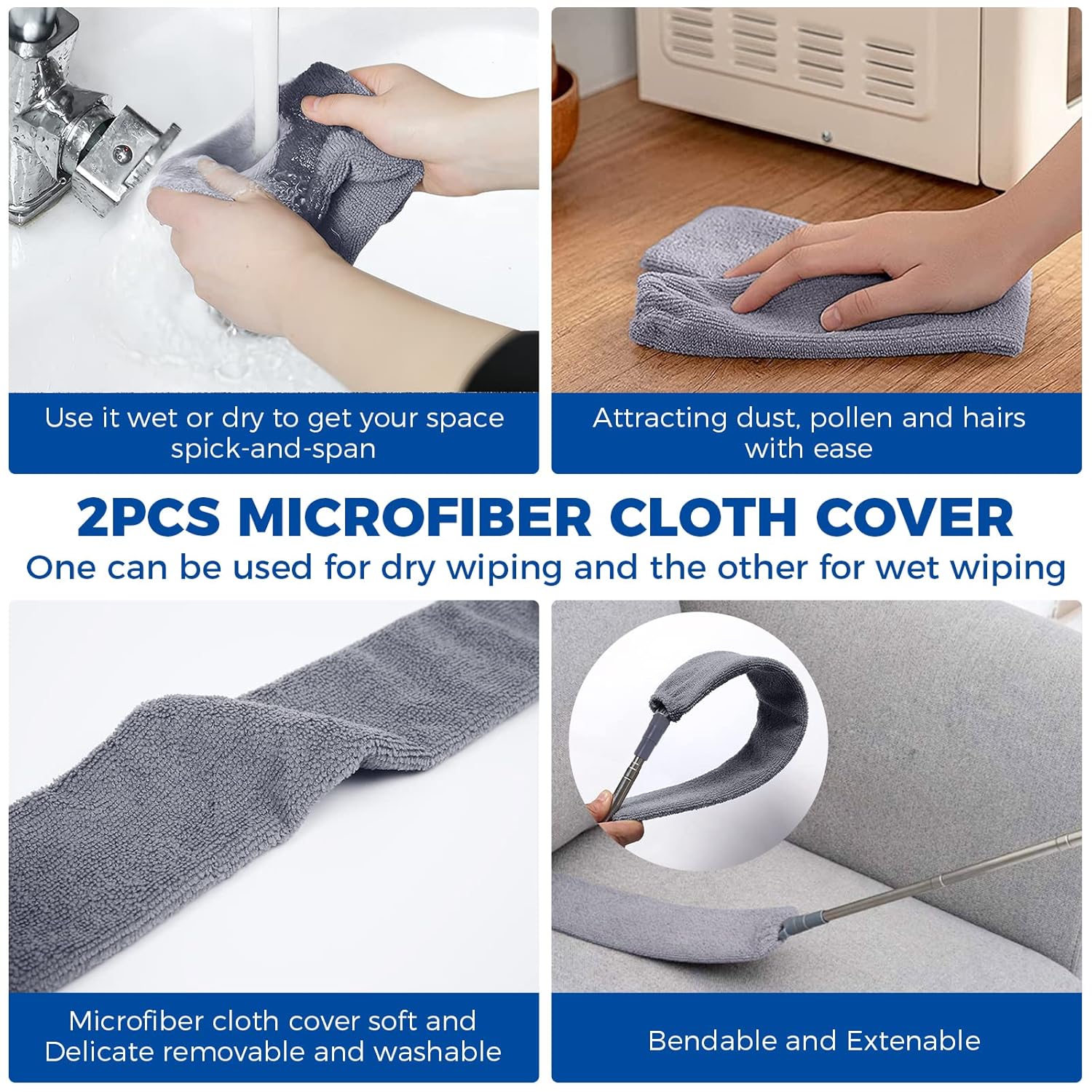 - 【Long Duster with Telescoping Pole】: The duster handle is made of heavy duty stainless steel, can be adjusted freely from 31 inches to 61 inches according to your actual needs, help you clean under appliance easily. The microfiber cloth cover let you sweep ash and dust easier!We have 2 packs microfiber cloth cover,soft and easy to clean and remove dust and hair.